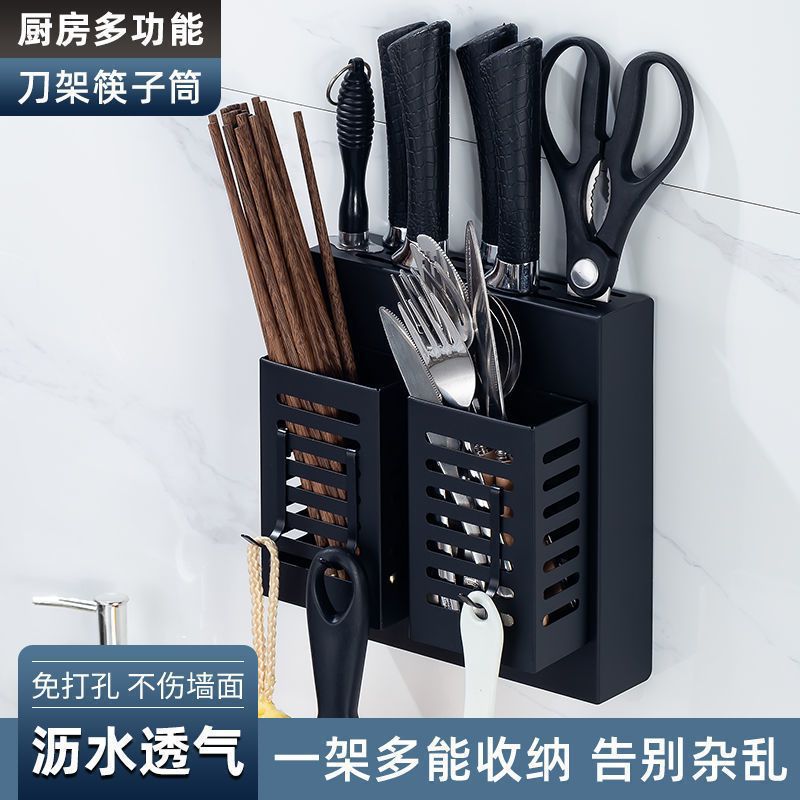 厚みのあるナイフホルダー、パンチフリーのキッチン収納ラック、キッチン用品、箸ホルダー、ナイフ収納ラック、多機能壁掛け