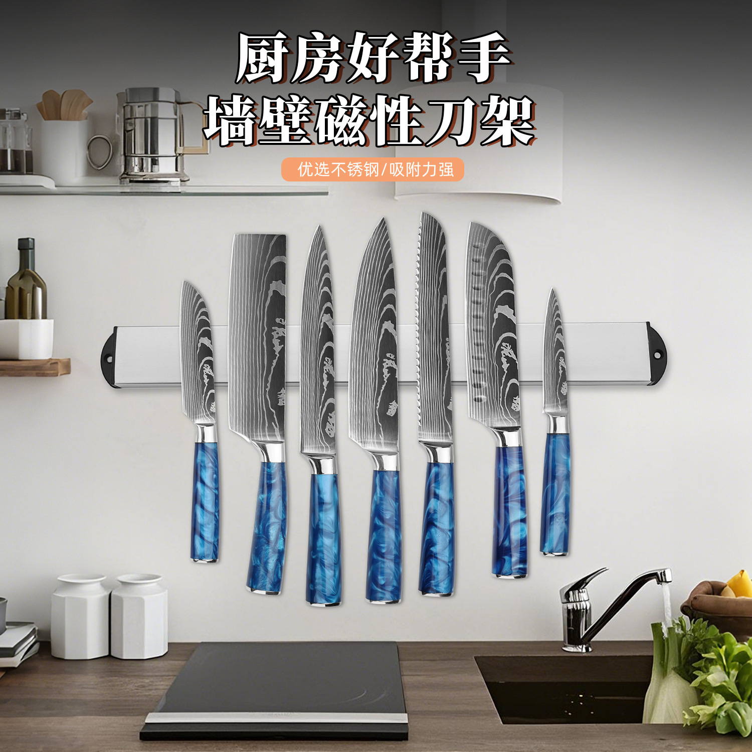 家庭用多機能磁気ナイフホルダー、穴あけ不要の壁掛け式磁気ナイフ収納ラック、キッチン用マグネットナイフホルダー