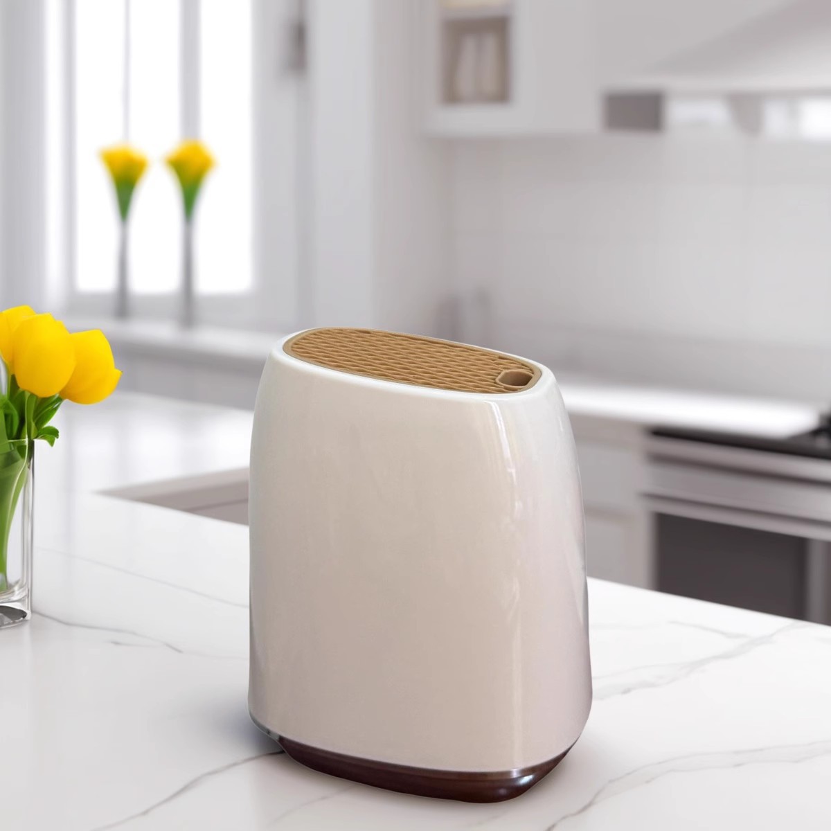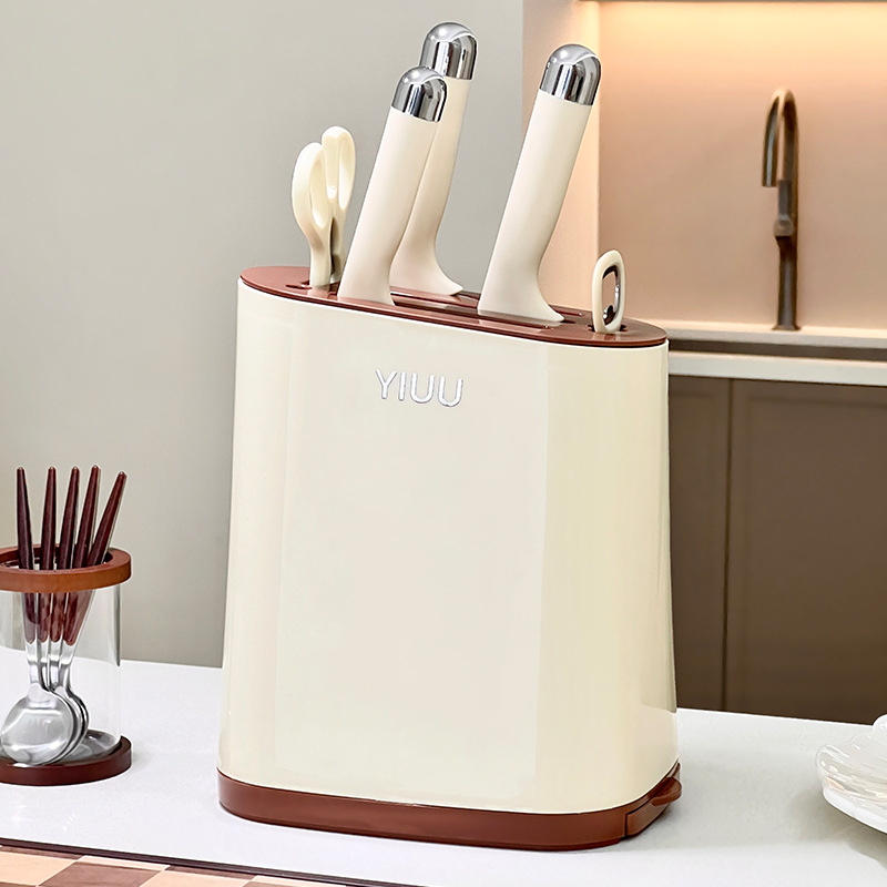 高級感のあるクリーム風包丁ラック、カウンタートップキッチン多機能水切り包丁収納ラック、一体型ナイフホルダー