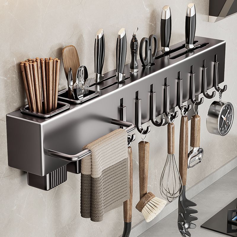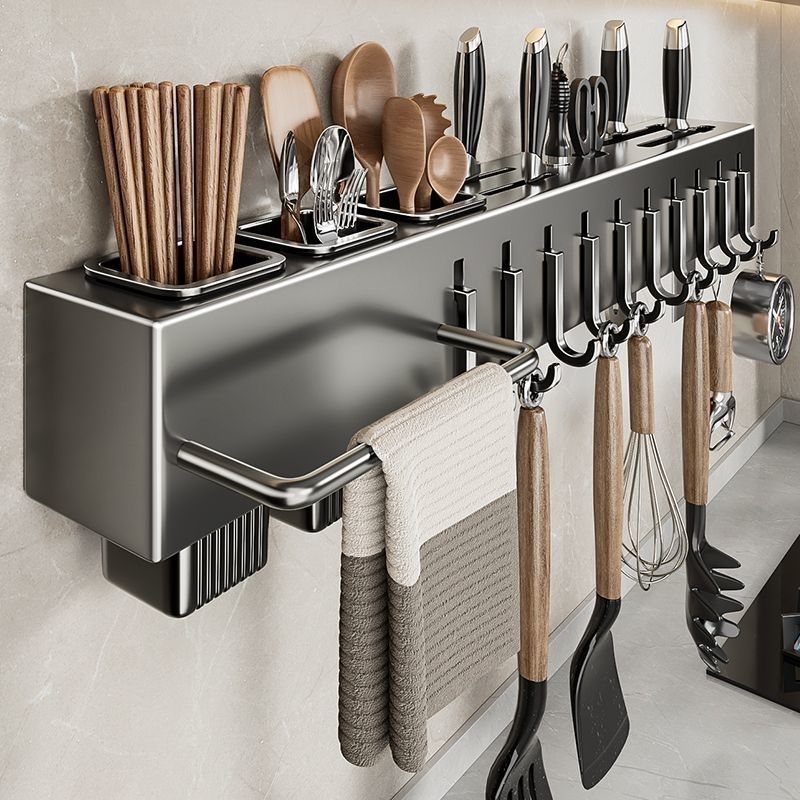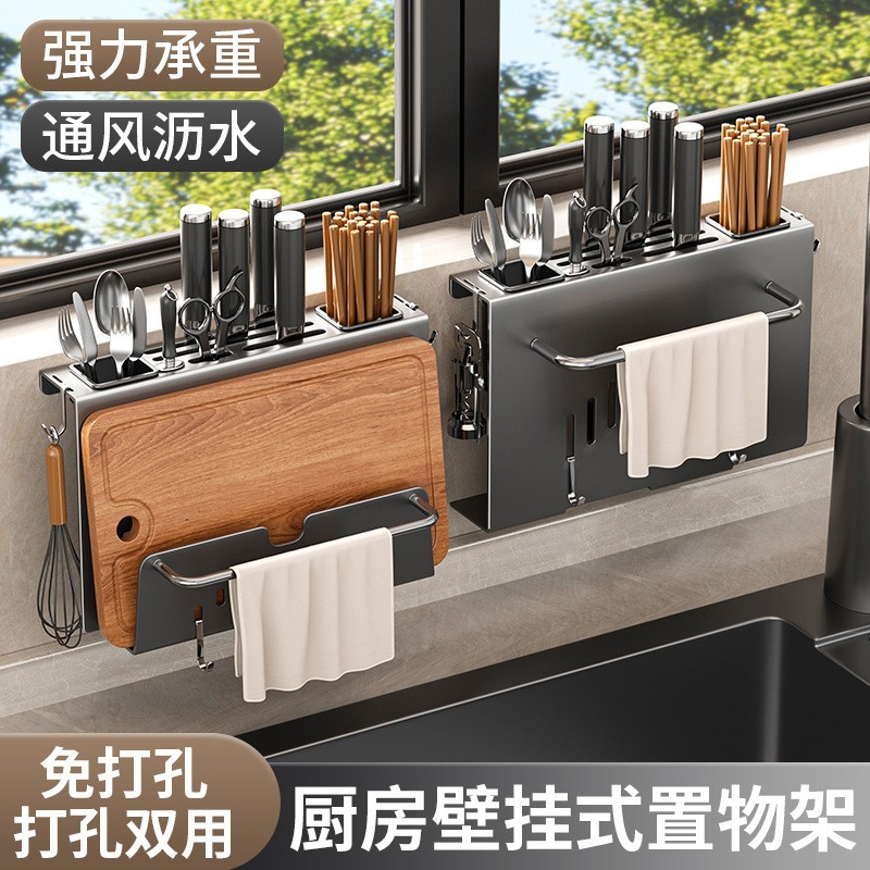 04 ステンレス鋼ナイフホルダー多機能家庭用パンチフリーキッチン箸収納ラック壁掛けフック