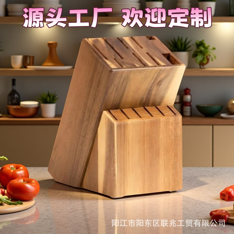 カスタマイズされたアカシア木製ナイフホルダーキッチン家庭用収納ラック無垢材ナイフホルダーソースメーカー卸売