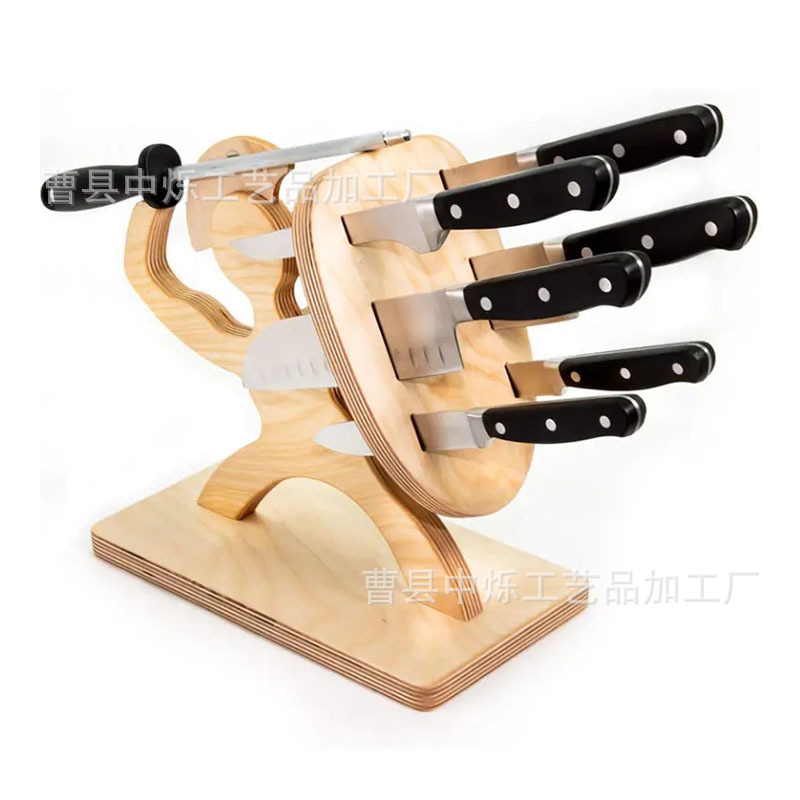 クリエイティブ竹ナイフホルダーフィギュアシールドキッチンカウンタートップ包丁フルーツナイフ整理収納ベース多孔質木製ナイフホルダー