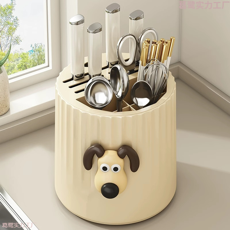 キッチン回転クマナイフホルダー収納ラック家庭用多機能箸ホルダー包丁ホルダースプーン一体型収納ボックス