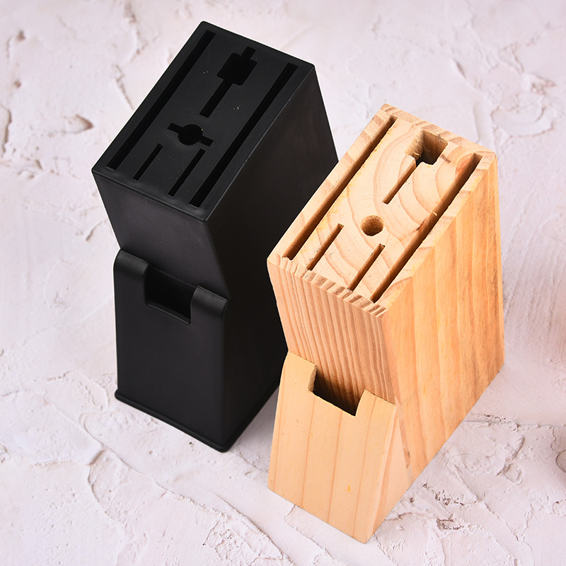 卸売りの料理用品の台所の安い黒いゴムの席の木製の刀のホルダーの包丁の多い挿し口の包丁の棚の収納棚