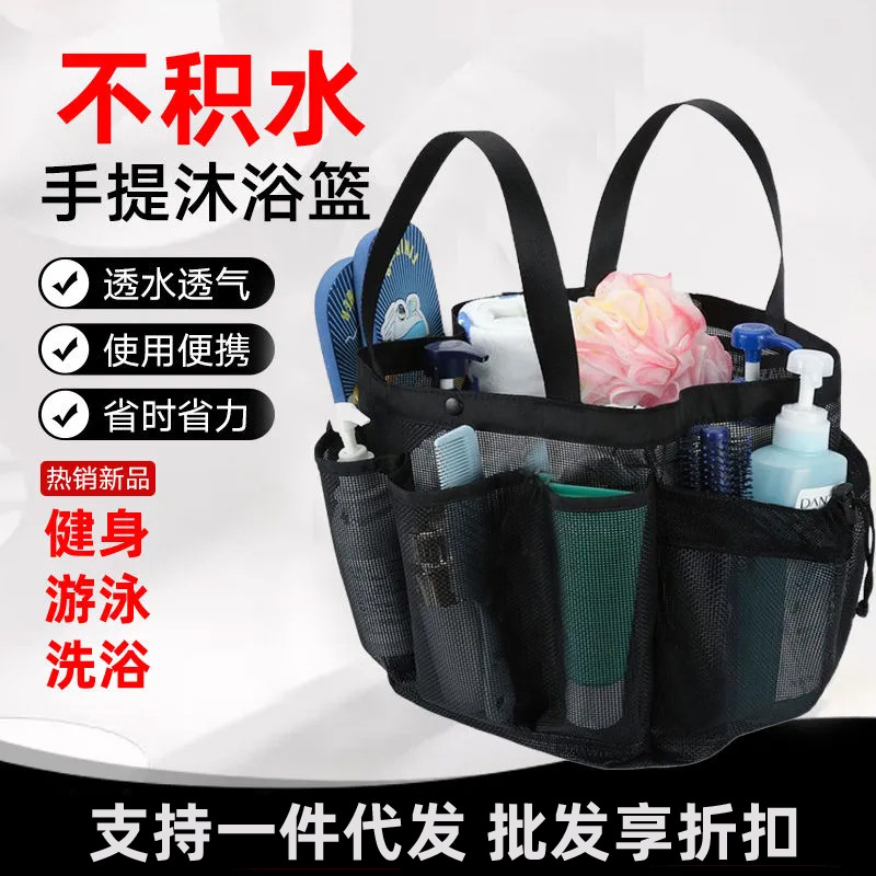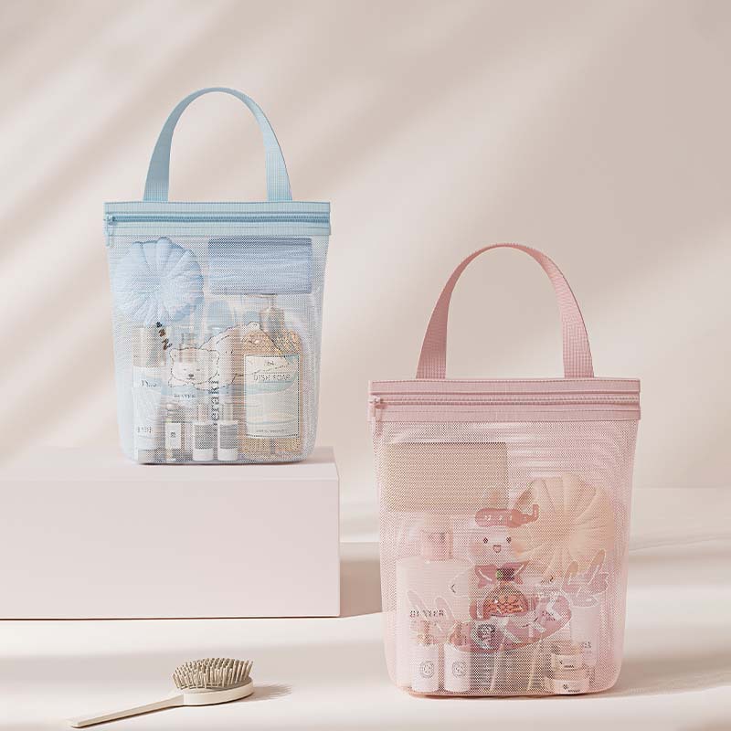 快乾洗面バッグメッシュ入浴バスケット化粧バッグ男女共通洗面用品収納袋風呂ポケット手提げ袋