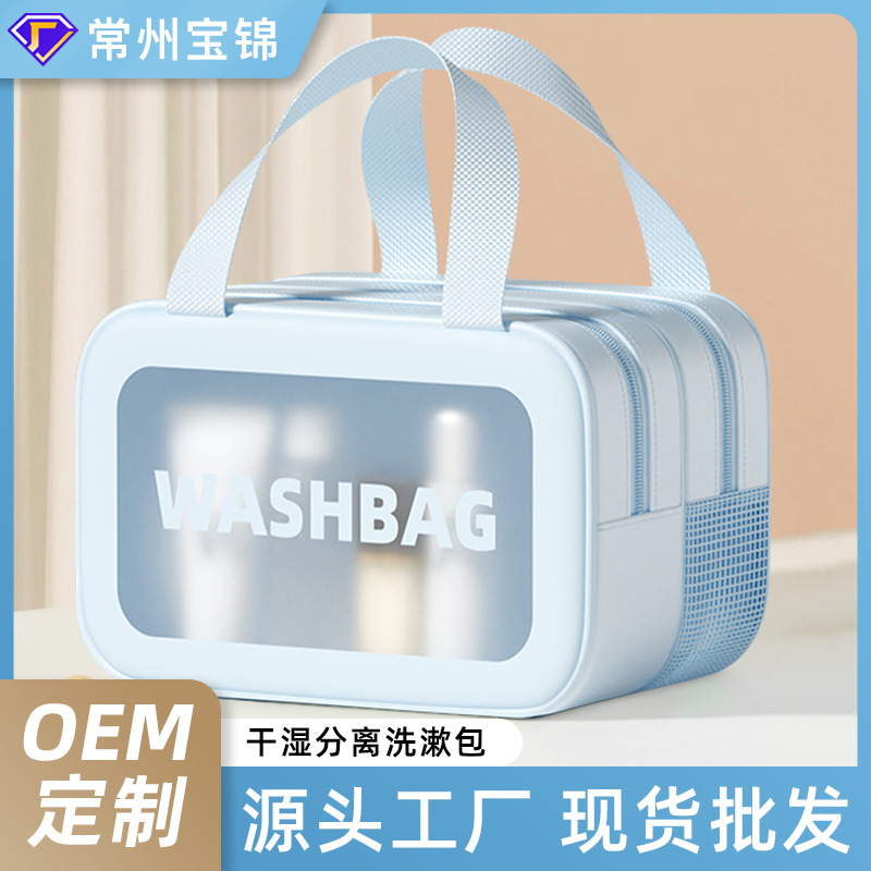 透明pvc乾湿分離洗面バッグ化粧バッグ大容量携帯旅行収納バッグ防水ビーチバッグ