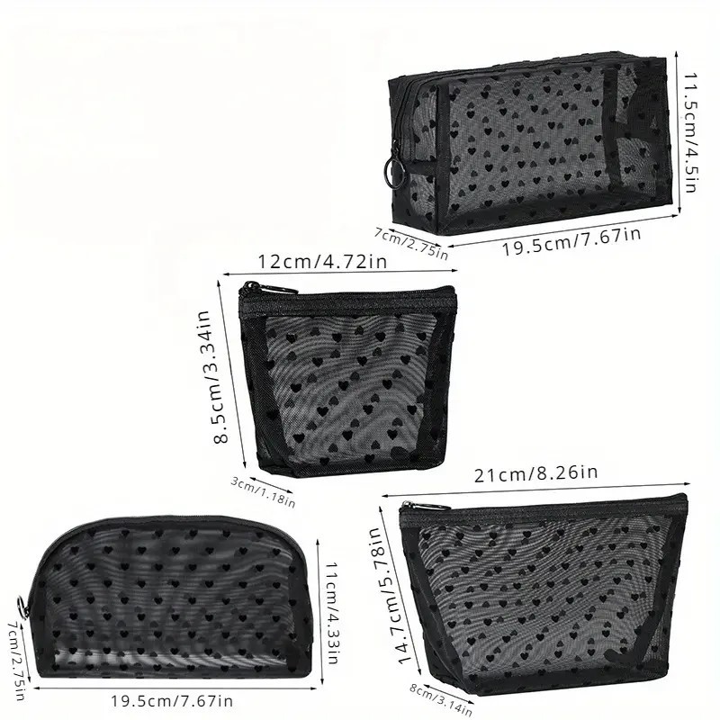 クロスボーダーガールズハートフリースハート型メッシュ化粧ポーチ透明トラベル収納バッグ携帯用口紅入れ化粧品