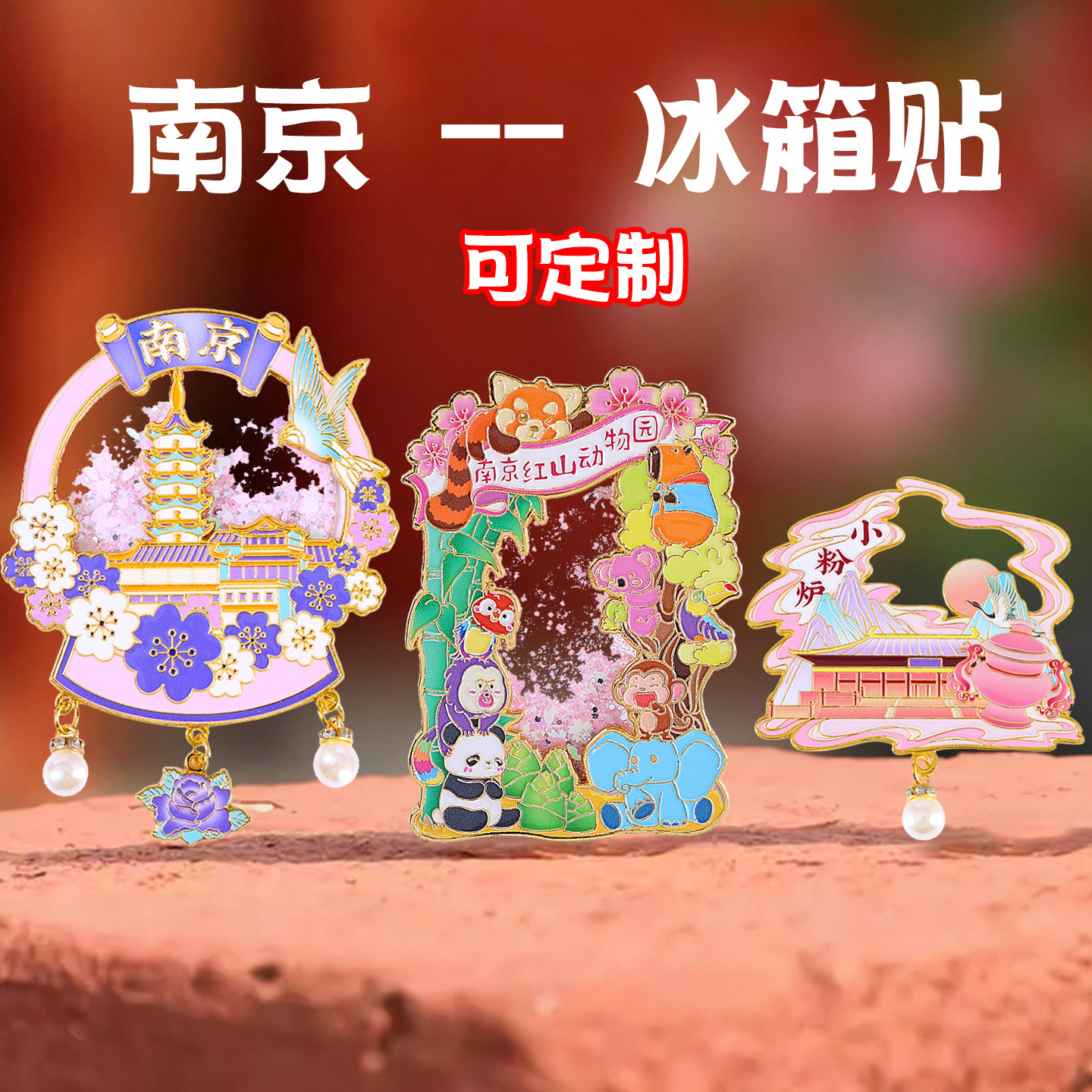 全国の都市の金属製南京冷蔵庫ステッカー、観光周辺の景勝地、文化的で創造的なお土産、冷蔵庫用磁気ステッカー、ギフト