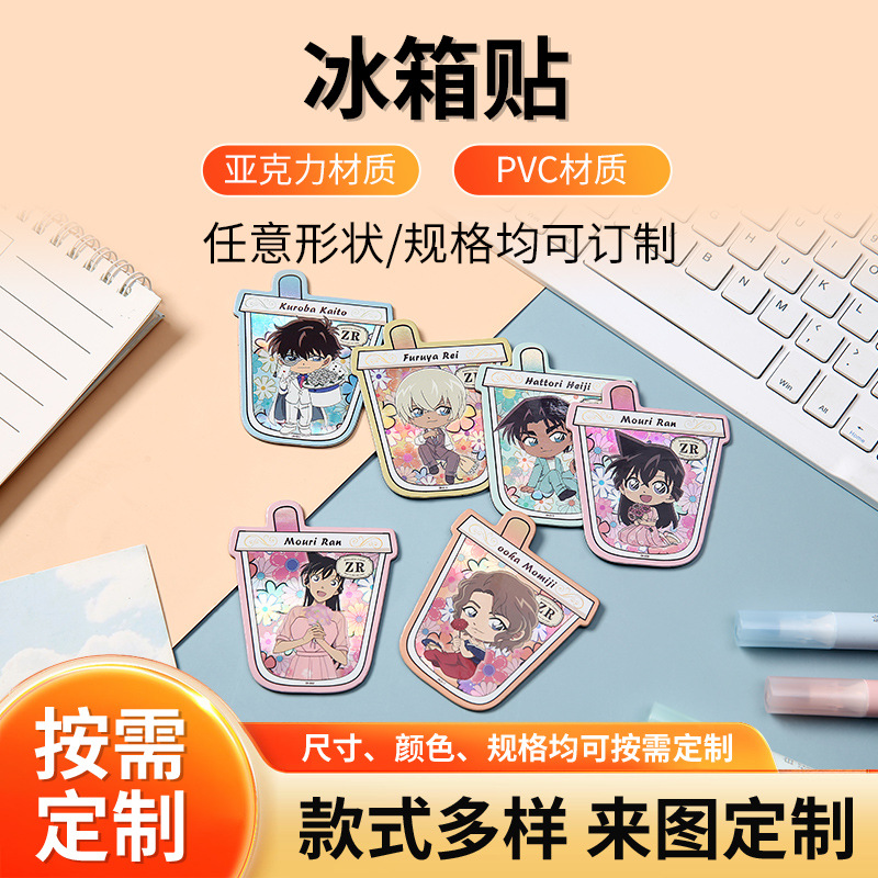 かわいいアニメdiyアクリル冷蔵庫貼りコナンシリーズアニメpvc磁気吸引冷蔵庫貼りカスタム卸売り