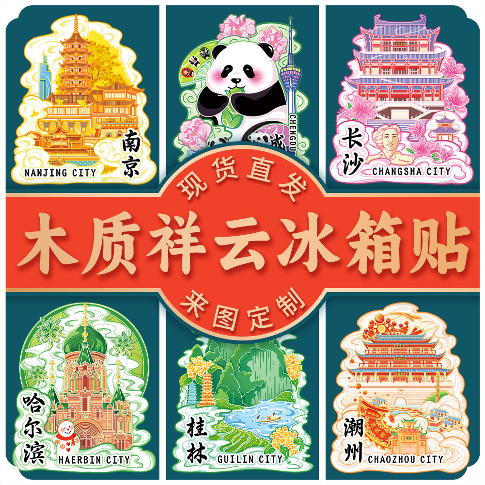 流砂文創都市冷蔵庫は北京万里の長城を貼って蘇州重慶敦煌泰山国潮観光記念品を開封します。