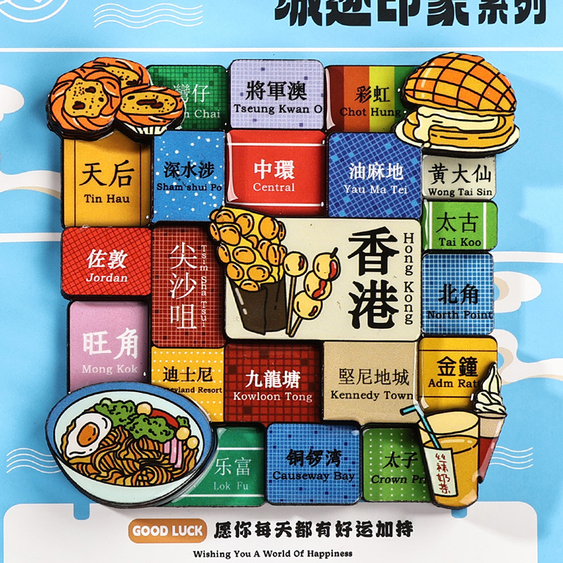 2025 新香港、マカオ、台湾都市冷蔵庫マグネット香港銅鑼湾マカオ台湾旅行お土産木製マグネット