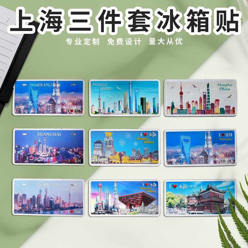 上海冷蔵庫は東方明珠豫園外灘上海センターの磁気的な旅行記念品のプレゼントを3点セット貼っています。