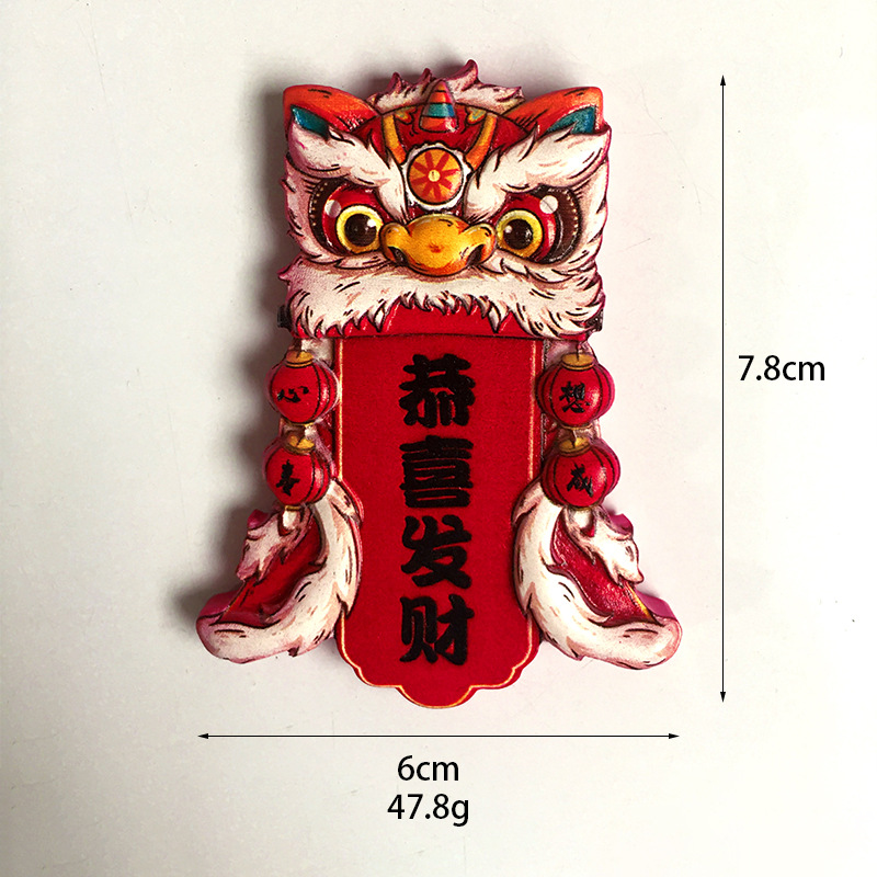 国潮文創冷蔵庫貼り日富一日目を覚ますライオン磁気冷蔵庫貼りアイデア3d立体浮き彫り中国風磁気貼り