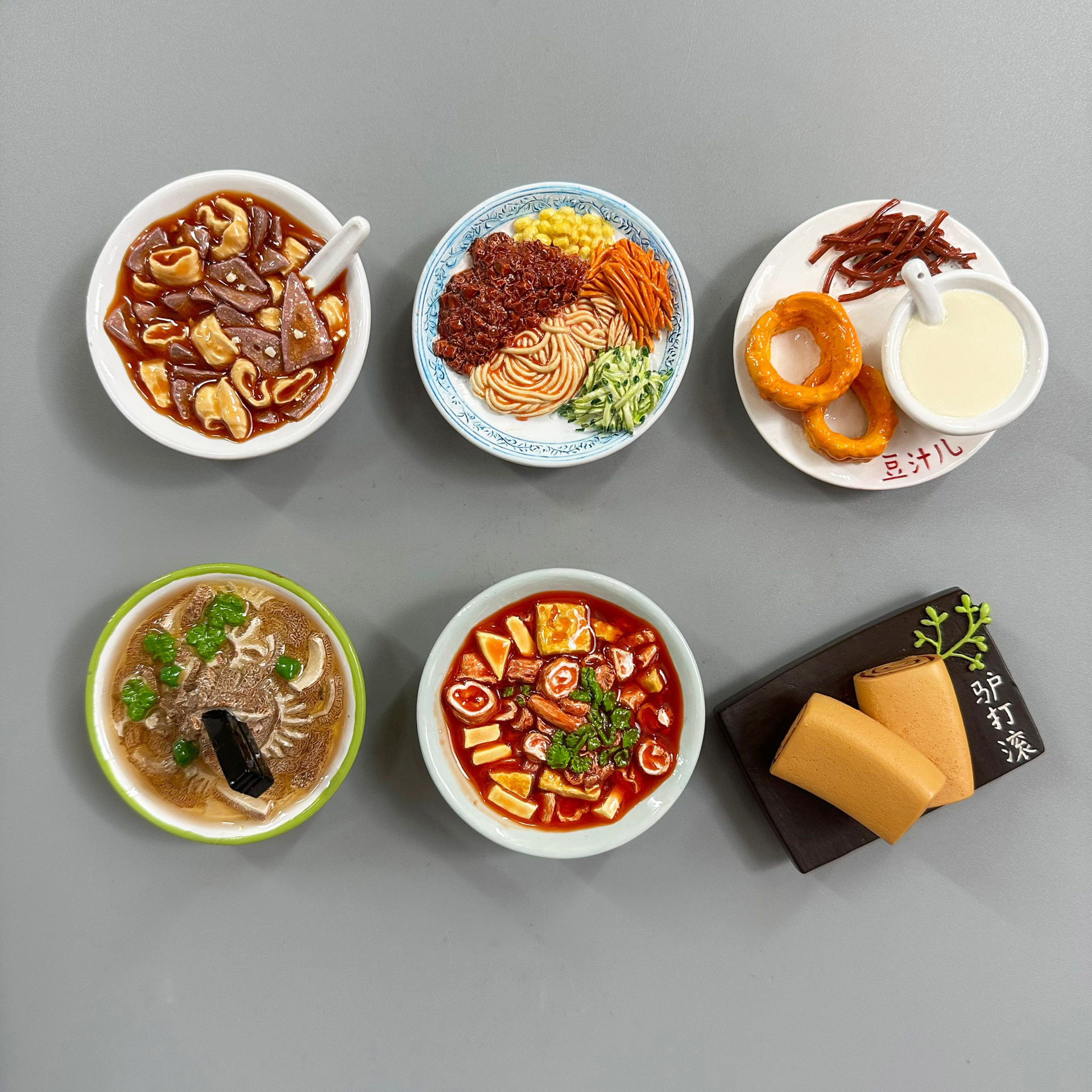 3d立体ジャージャー麺樹脂シミュレーション食品かん水火焼き古い北京市のグルメロバが冷蔵庫を転がす