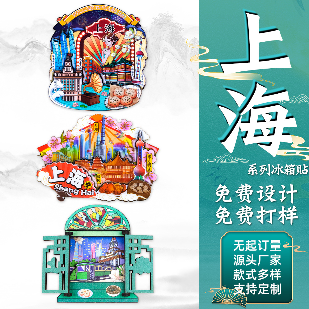 【上海】都市観光冷蔵庫は上海旅行記念品の国潮3d立体木製冷蔵庫を貼って卸売りします。