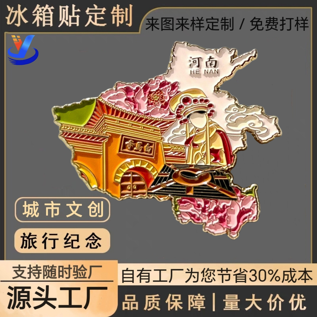 金属冷蔵庫は観光地区観光博物館の観光スポットロゴ文創ギフト工場の塗装エナメル工芸品を貼る