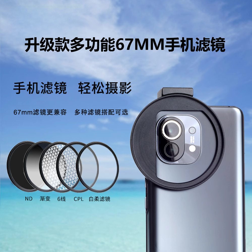 多機能携帯電話フィルター67mm携帯電話クリップ偏光子ND調節可能星光鏡接写黒柔白柔鏡