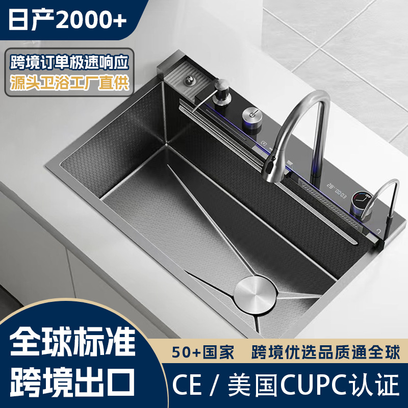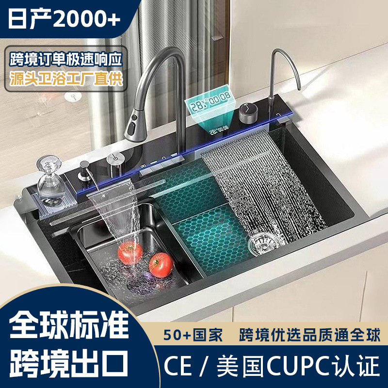 厚みのあるシンク 304 ピアノハニカムアロワナキッチンデジタルディスプレイシングルスロット滝ナノステンレス鋼フライングレインシンク