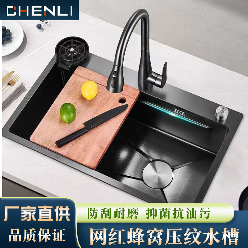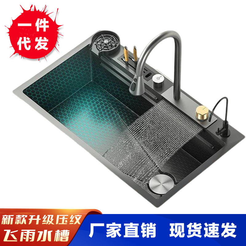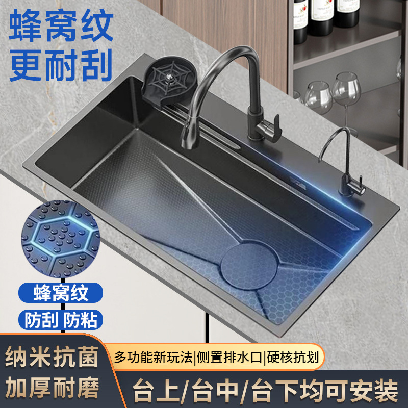 国境を越えたハニカムパターン黒飛雨滝クジラ水槽大単槽304ステンレス洗面器台所池
