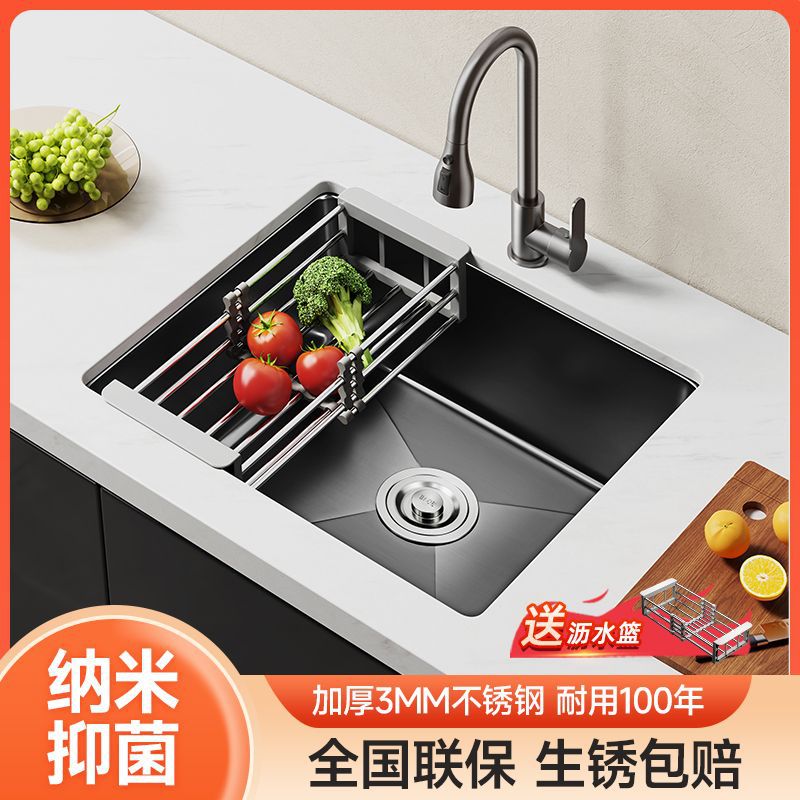 ナノ黒色水槽304ステンレスの皿洗い槽で野菜を洗う家庭用台下盆台所の大単槽で野菜鉢を洗う