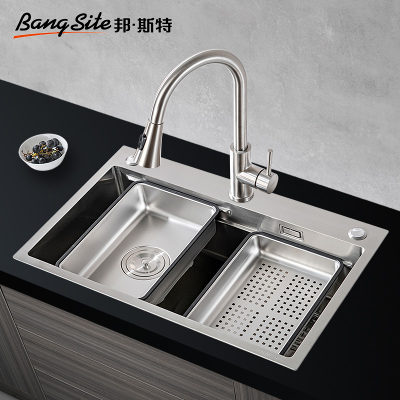 5838台下台上食品級sus304ステンレス家庭用手作り水槽厚さ黒金剛菜盆セット