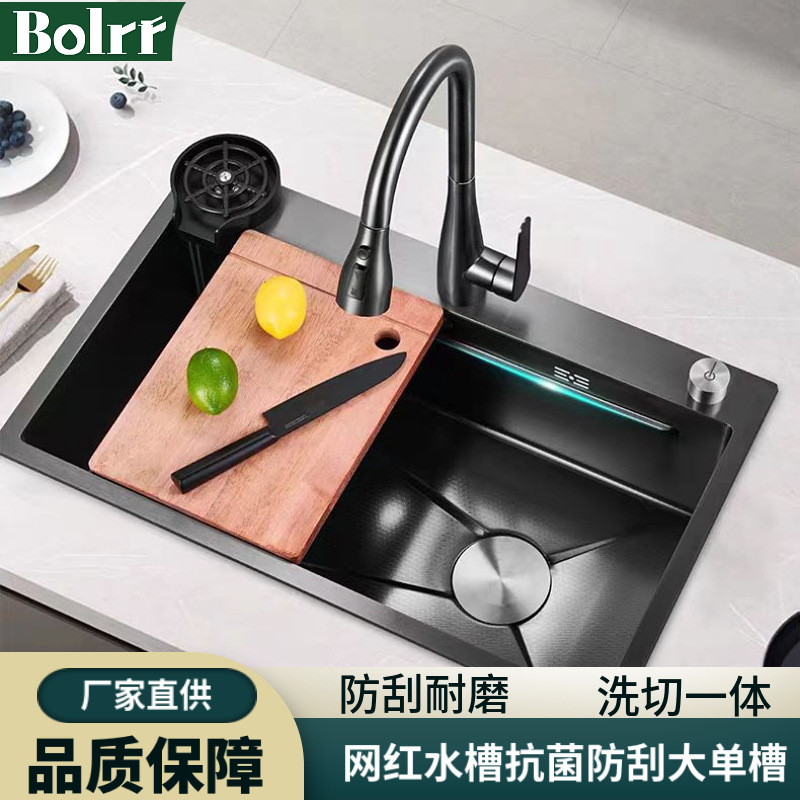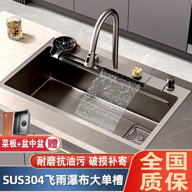 キーデジタルディスプレイキッチンシンク 304 ステンレス鋼レインフォール滝シングルスロット大型シンク一体型埋め込み