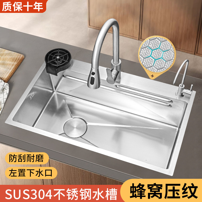 五孔飛雨滝型蛇口付きナノ大型単槽304ステンレス製キッチンシンク洗い桶