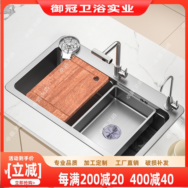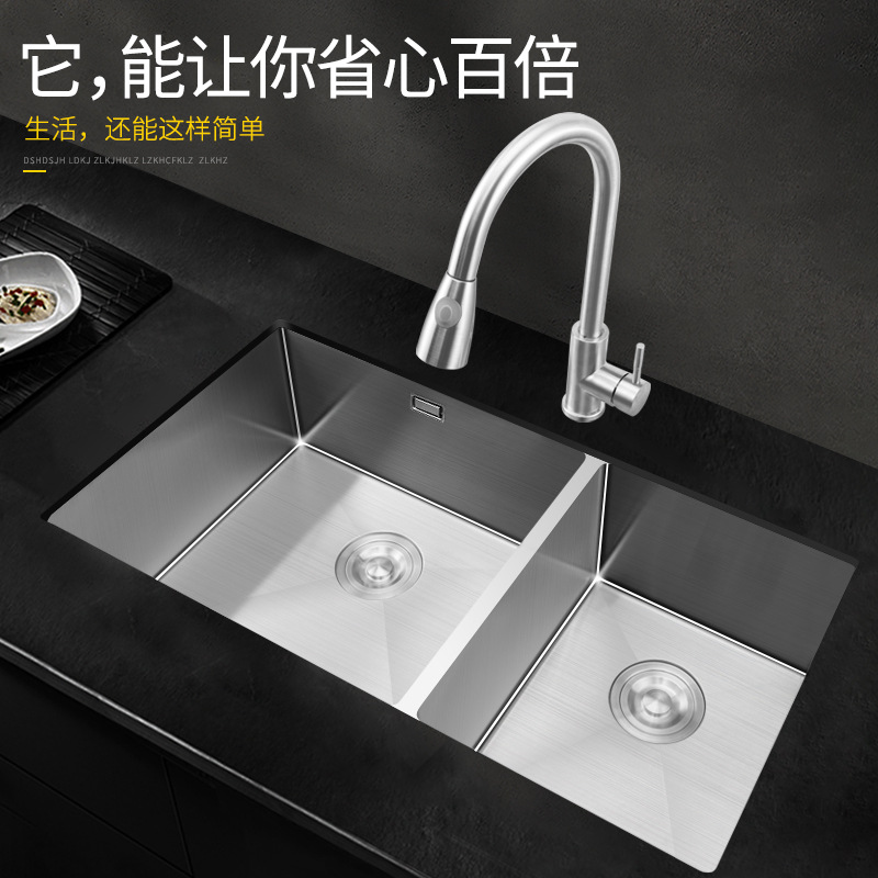 メーカー直販キッチン水槽大双槽304ステンレス洗面器手作り洗面器家庭用台下盆