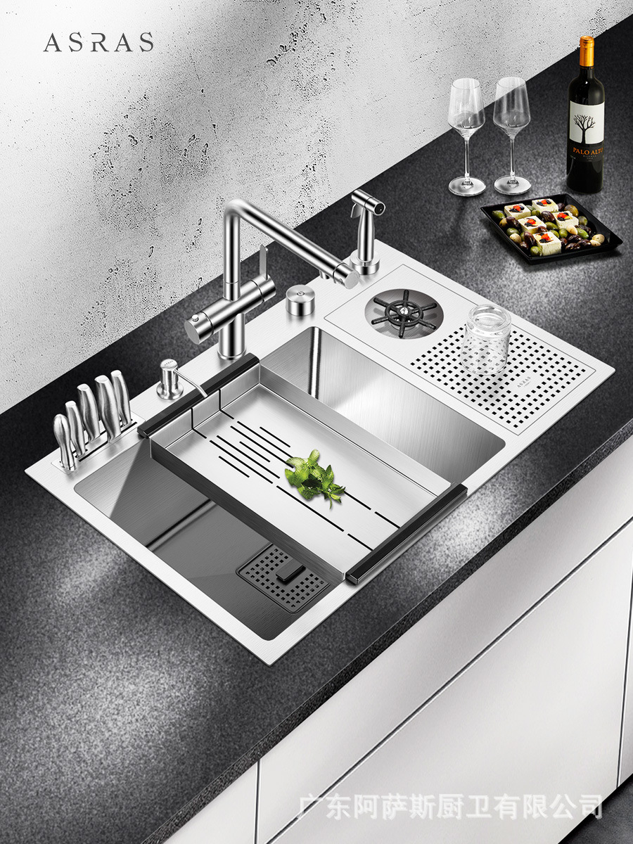 ハマー高厨房石英石水槽白黒大単槽野菜洗浄池洗面台上下盆水たまりセット