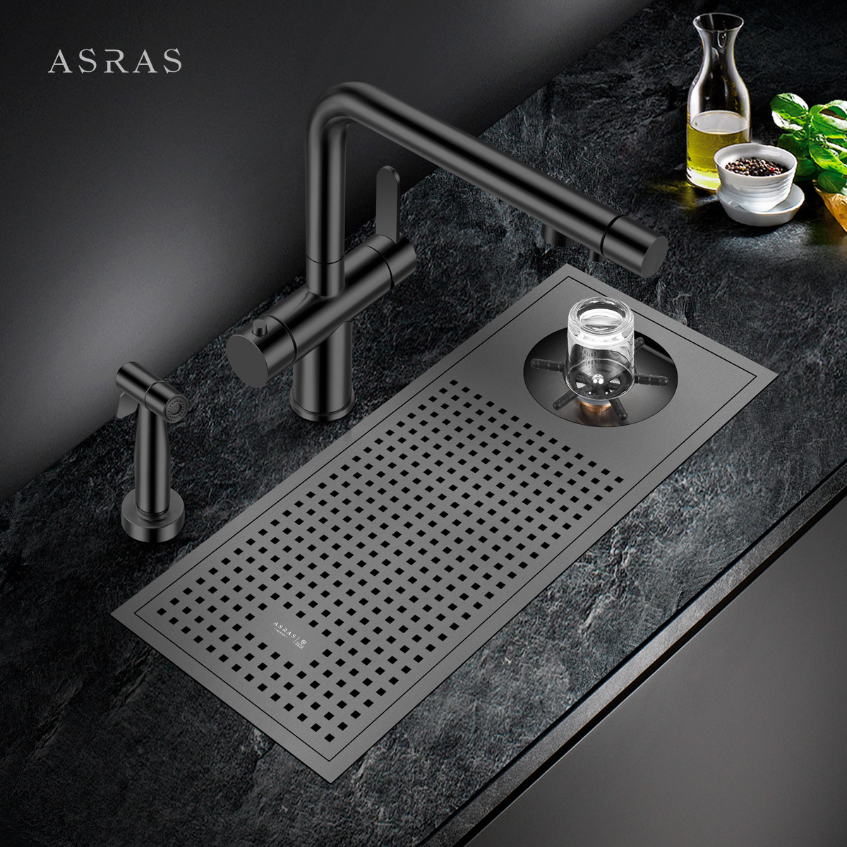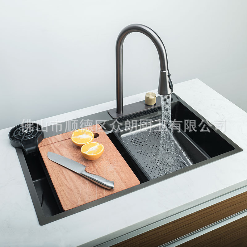 3Dナノ多機能大型単槽黒色シンク304ステンレス製キッチン洗い桶台下設置型食器洗いシンク