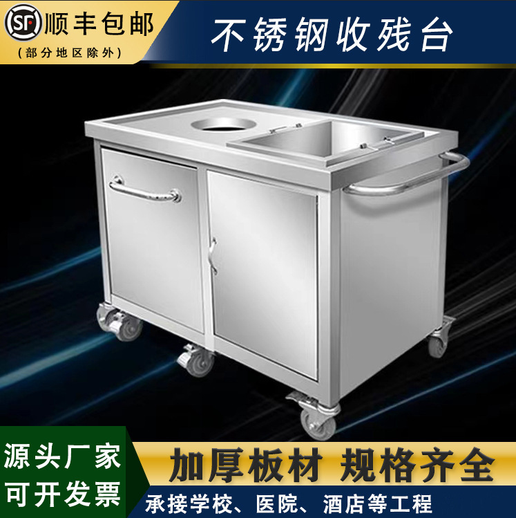 ステンレス製の残台をカスタマイズして、残車のゴミ捨て車の残食台泗水台の食器を収納して、食器のゴミ箱を収納します。