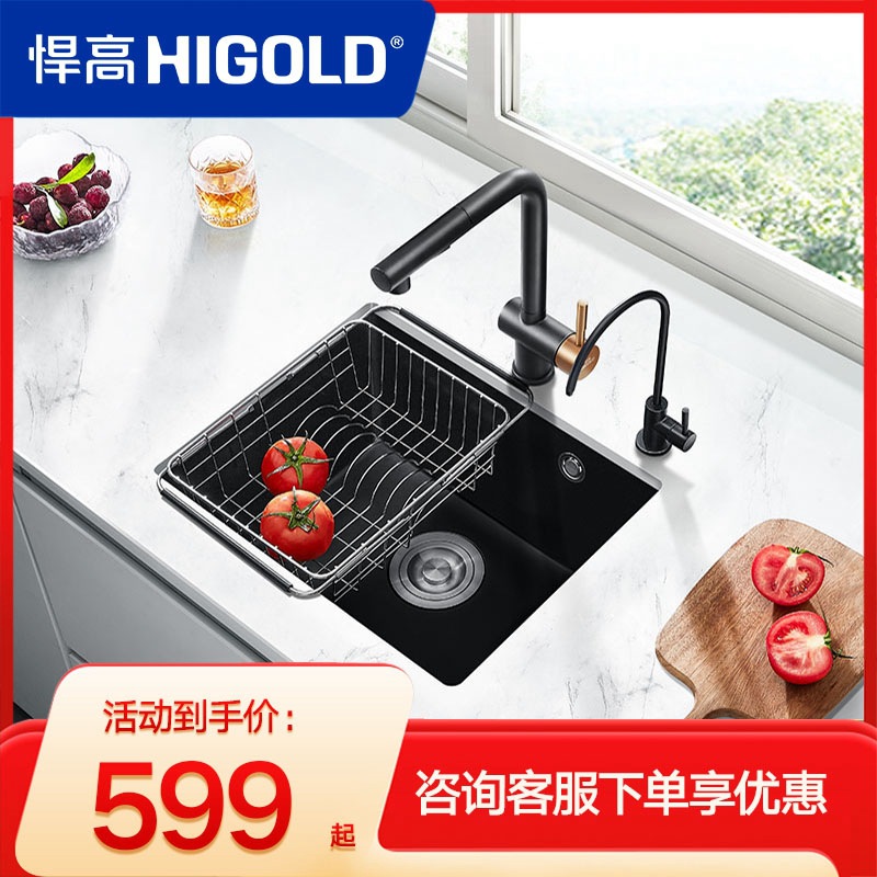 ハマー高厨房石英石水槽白黒小単槽野菜洗浄池洗面台上下盆水たまりセット