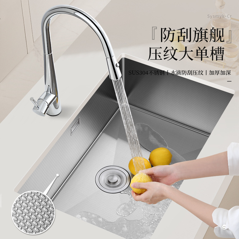 日本式大単槽軽贅沢3dエンボス304ステンレス洗面器洗面器台所水槽単槽