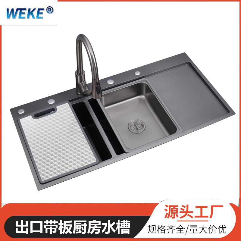 キッチンシンク、大型シングルシンク、家庭用ステンレス製シンク、黒ナノ手作りシンク