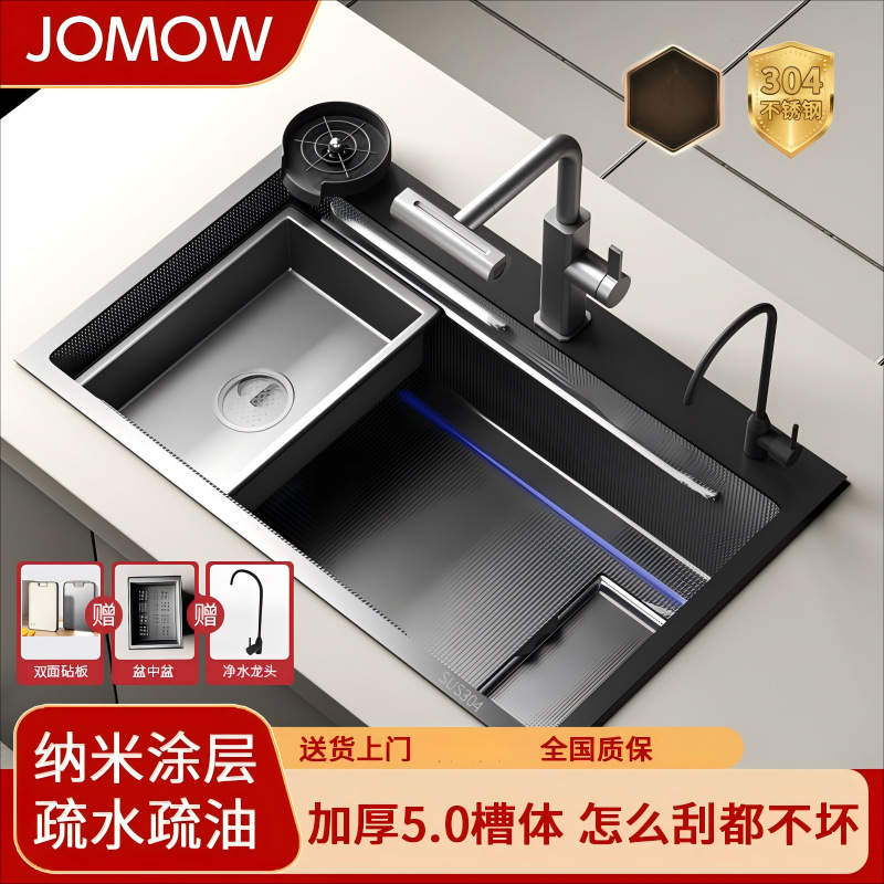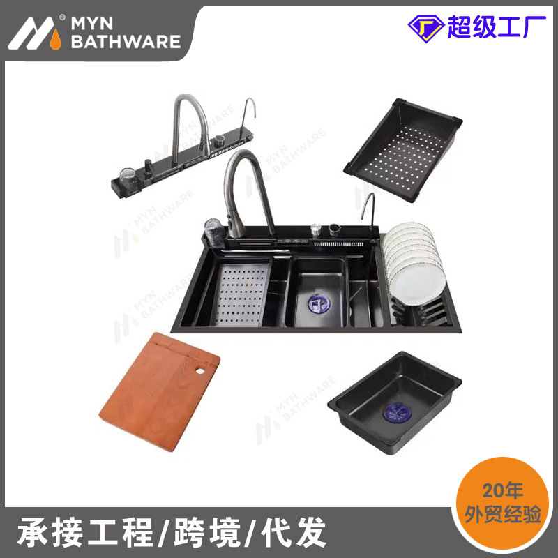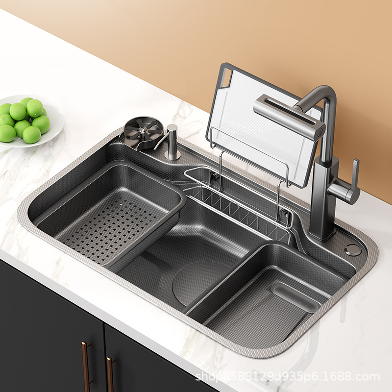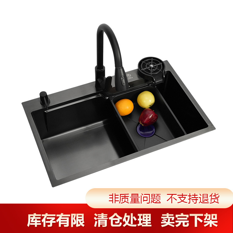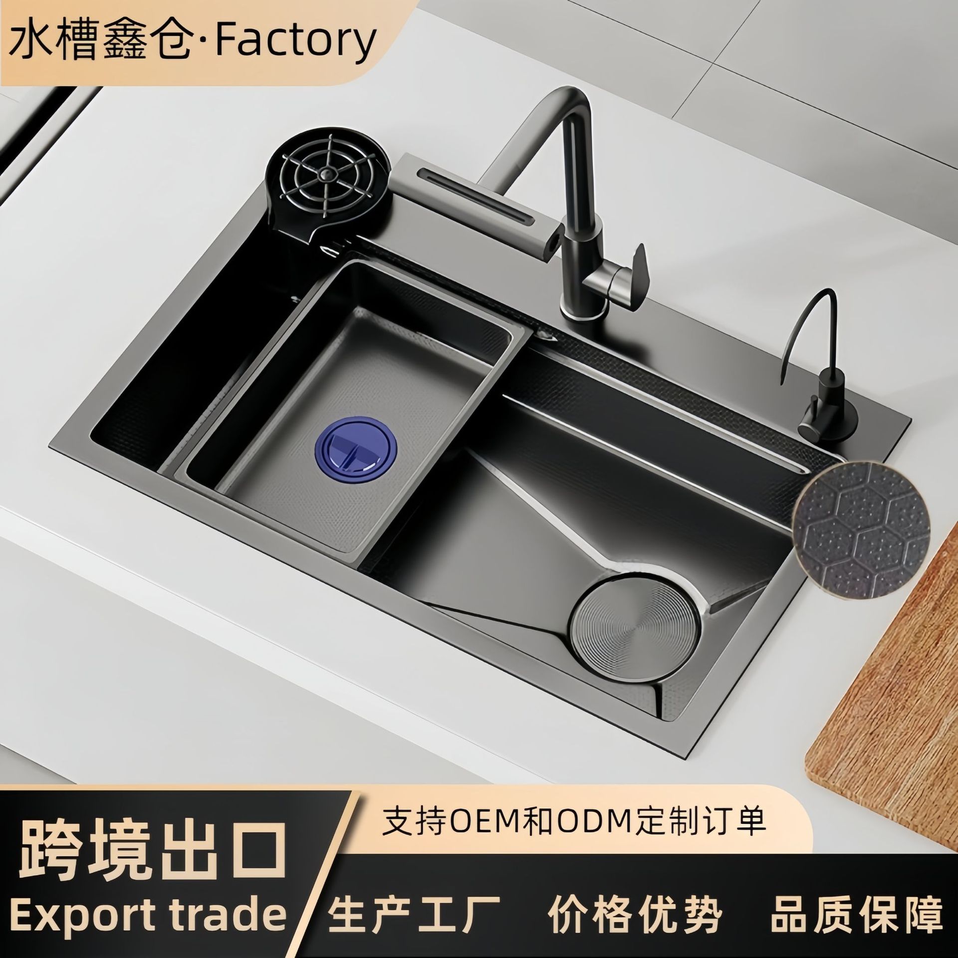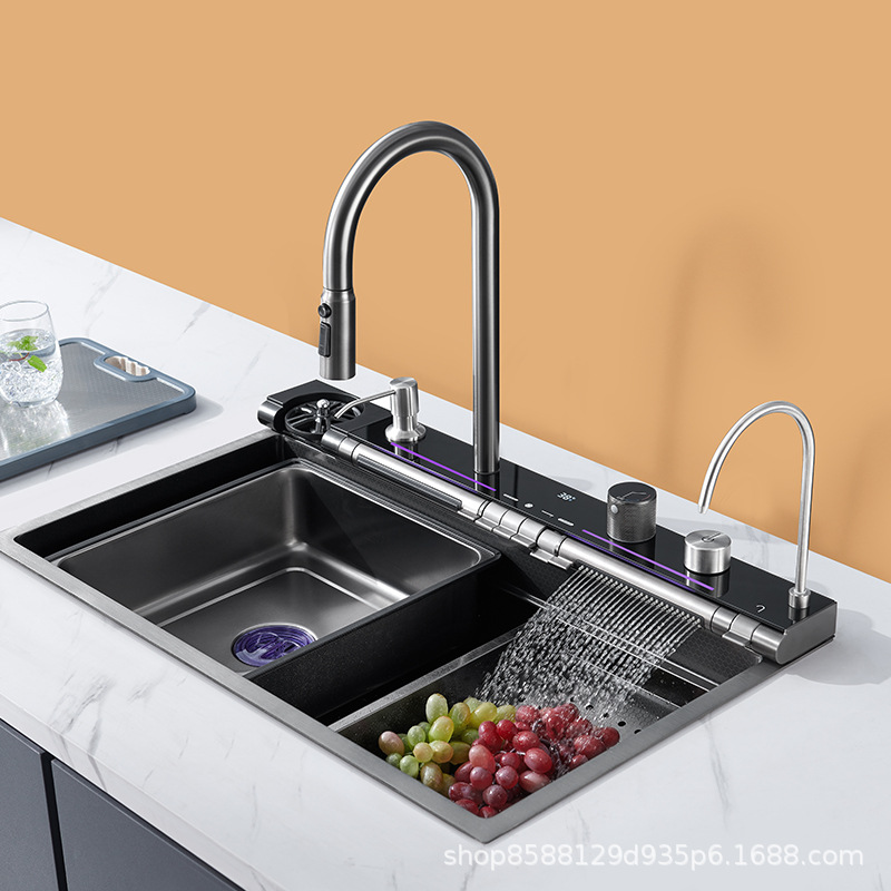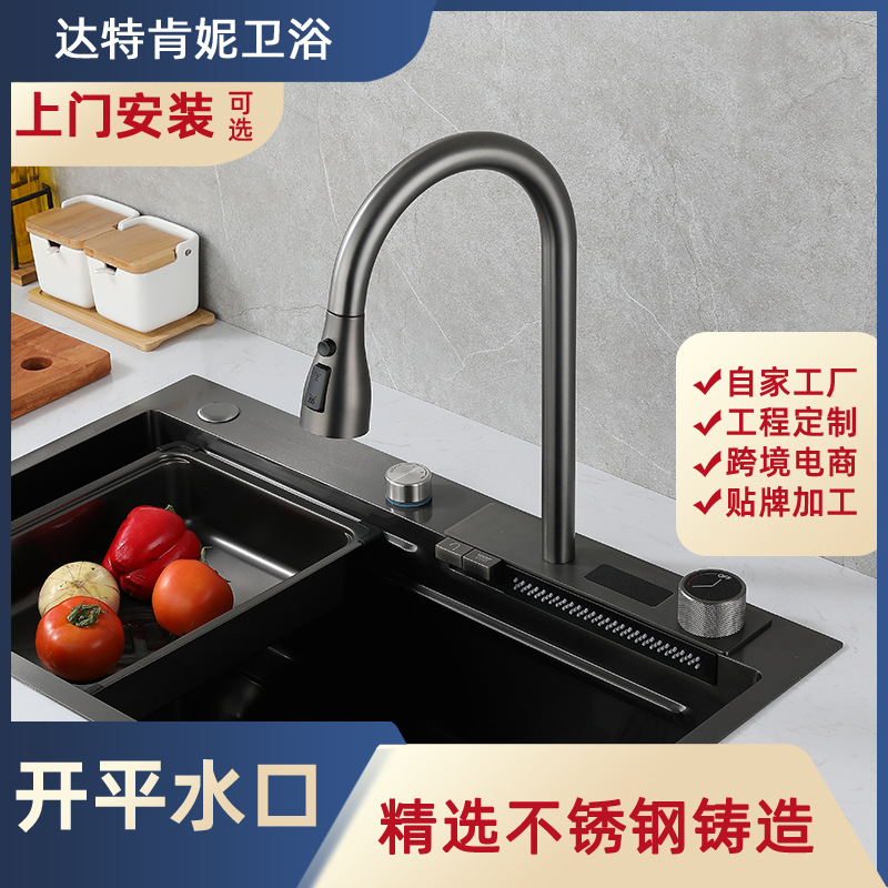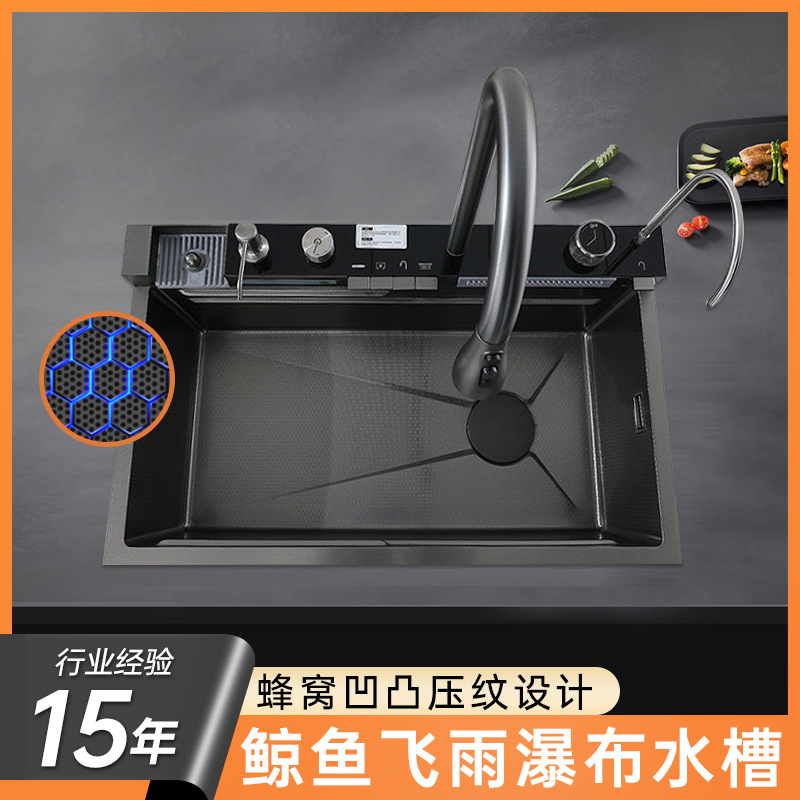 SUS304 ステンレス鋼サメ滝飛雨シンクボタンデジタル表示大型シングルシンク家庭用キッチンシンクセット