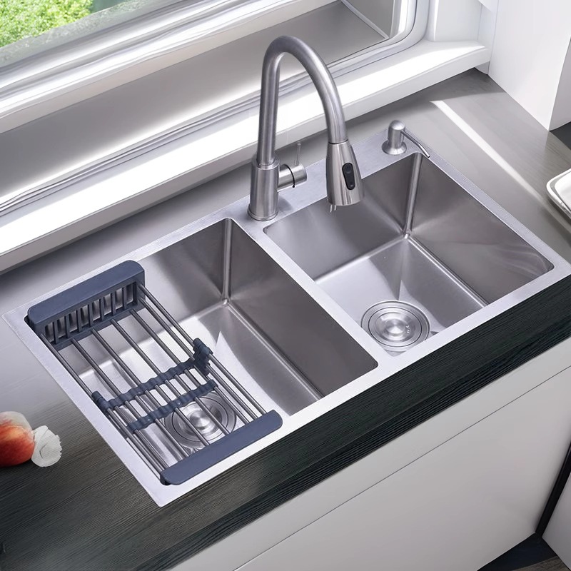 V-008 キッチン食器洗い家庭用 SUS304 厚みのある手作りシンクハニカムステンレス鋼大型シングルシンクシンク