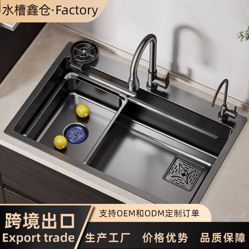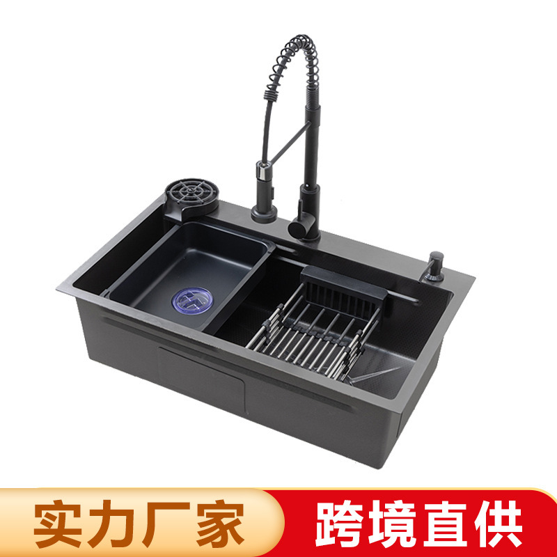 【国境を越えた直送】ナノブラックステンレスシンク大型シングルシンク家庭用キッチンシンクシンクセット