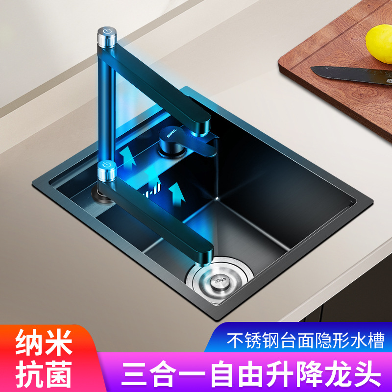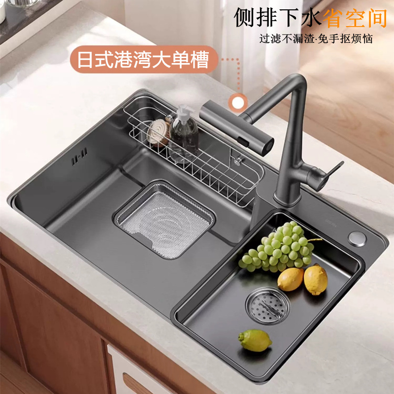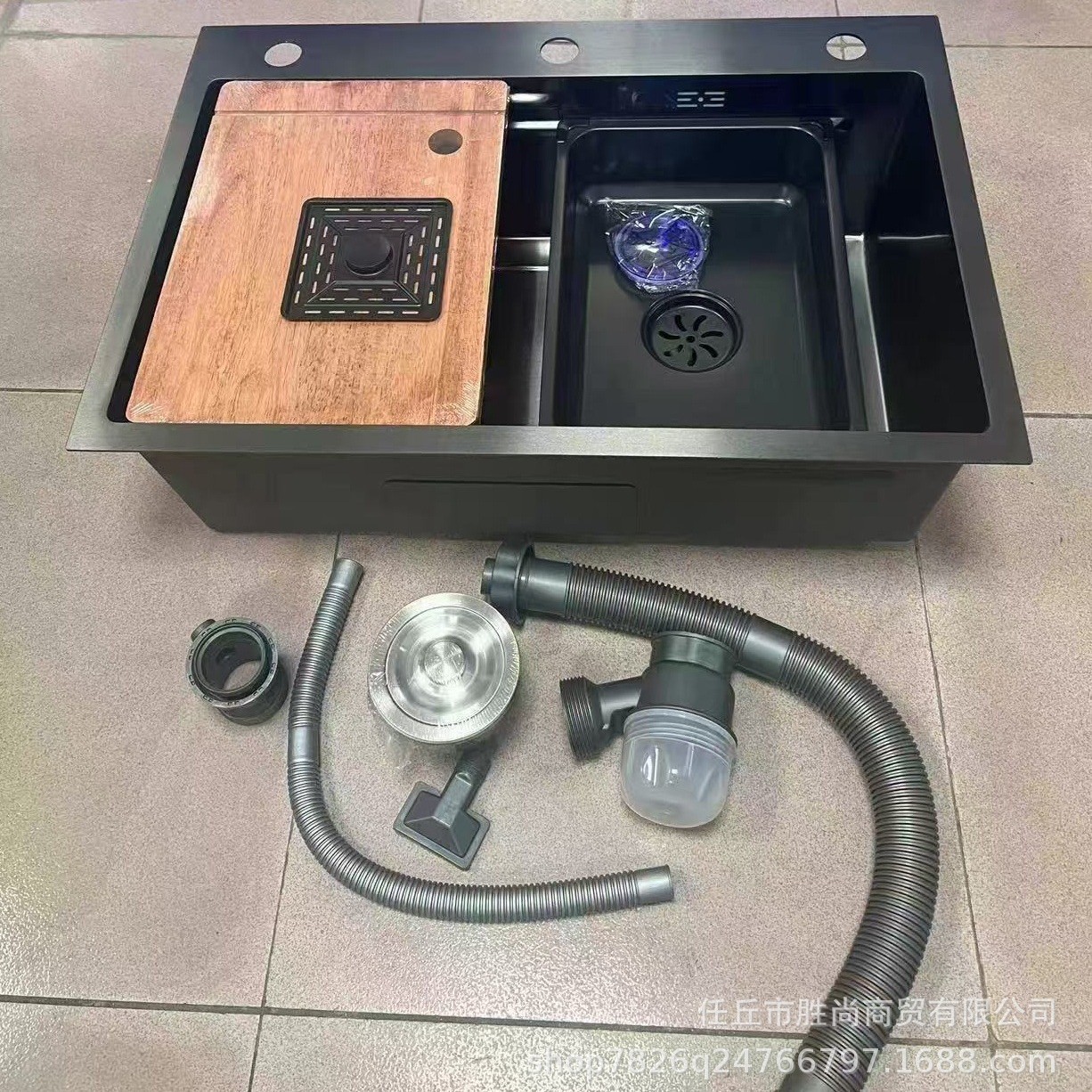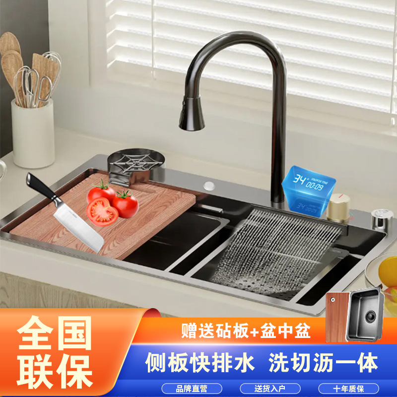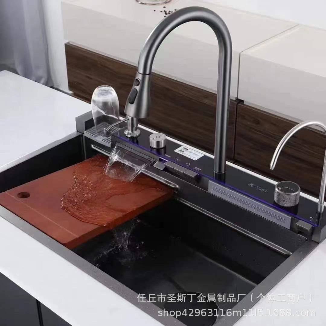 輸出クジラ水槽キッチンナノブラック大理石質感LEDデジタル表示飛雨ステンレス大単槽