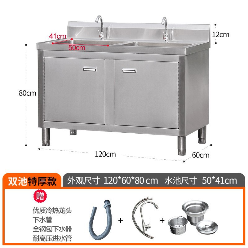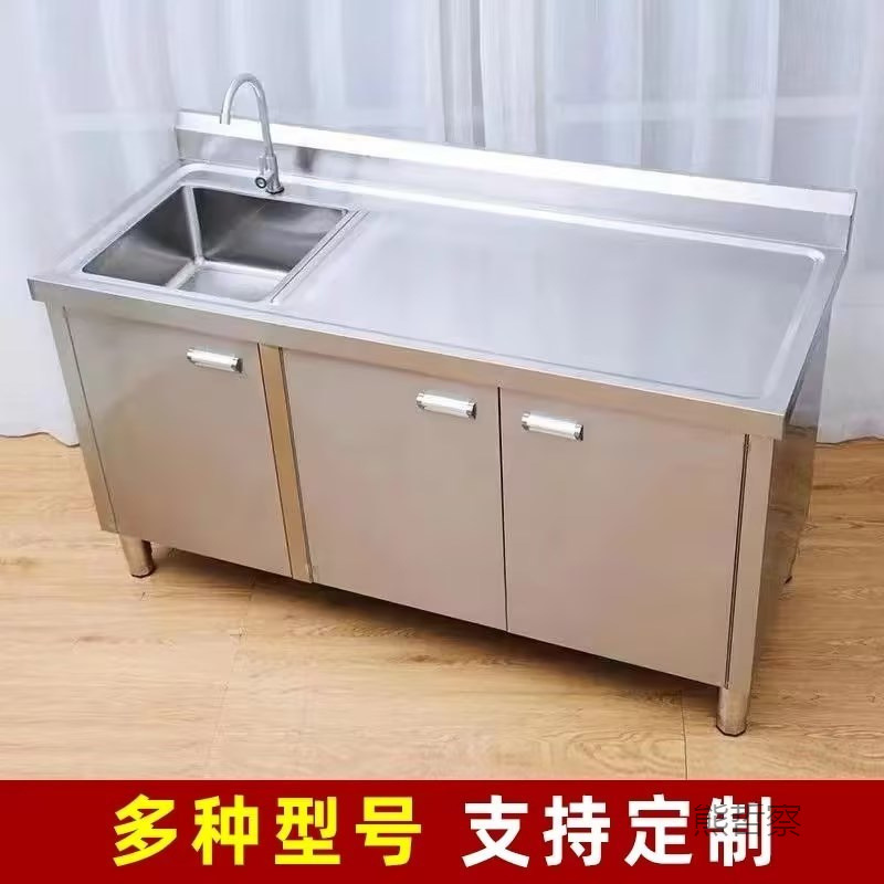 ステンレス引き戸作業台池付き商用水槽調理台一体収納家庭用キッチンキャビネットキャビネット