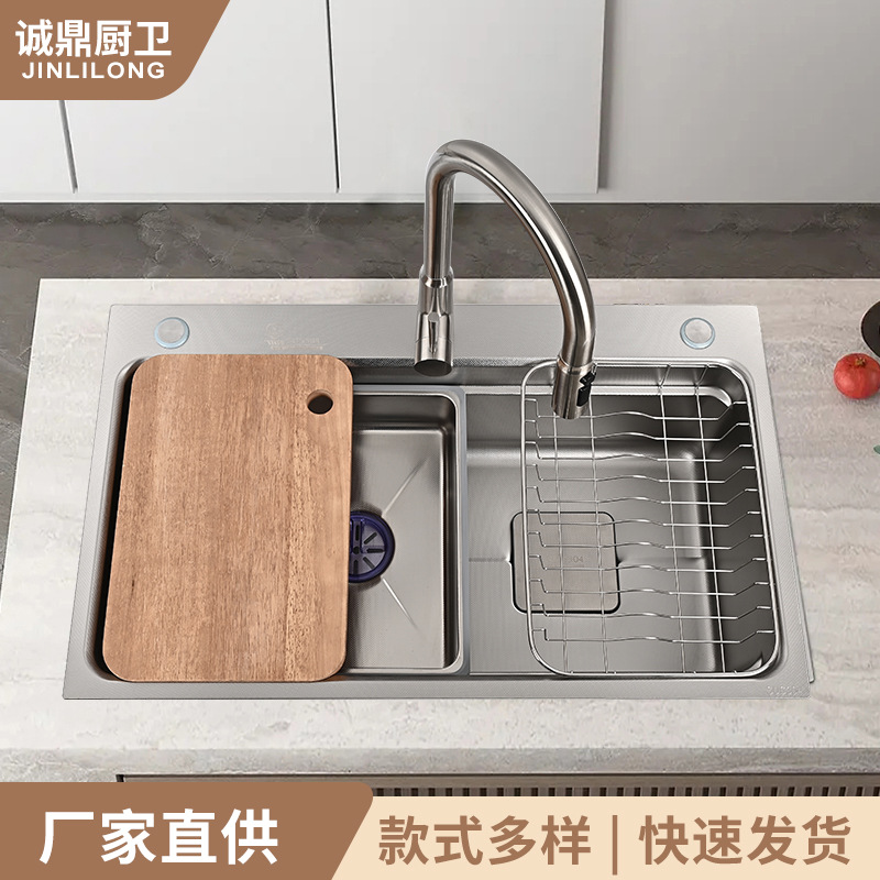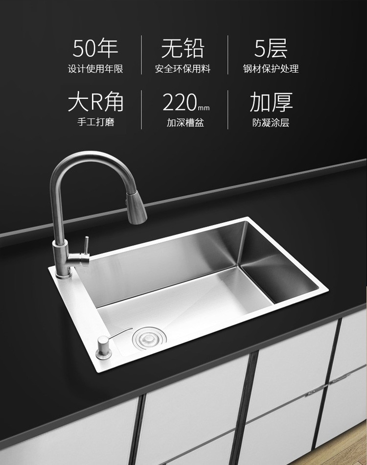 洗面器飛雨滝大単槽ナノ304手作りステンレス水槽台所家庭用皿洗い池が厚くなった