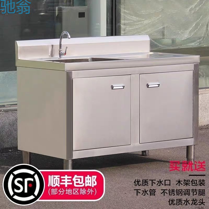 SkQ304ステンレス商用厚いプールキャビネット一体式水槽シングルプール洗濯キャビネット食器棚キッチンキャビネット