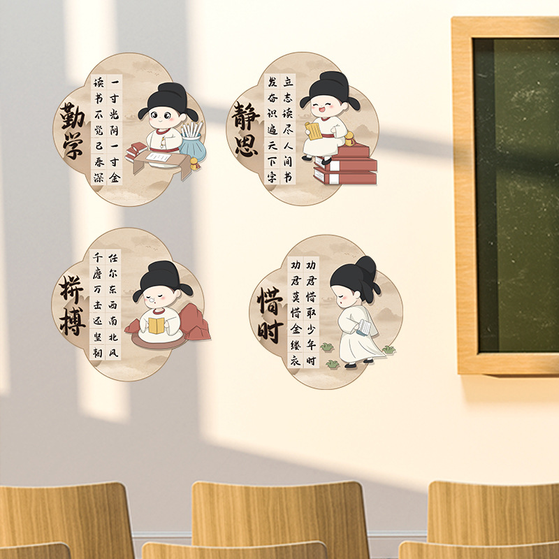 クラス条約文化壁には創意激励志のスローガンを貼ってクラスに入ると、静不織布教室に装飾壁を配置します。