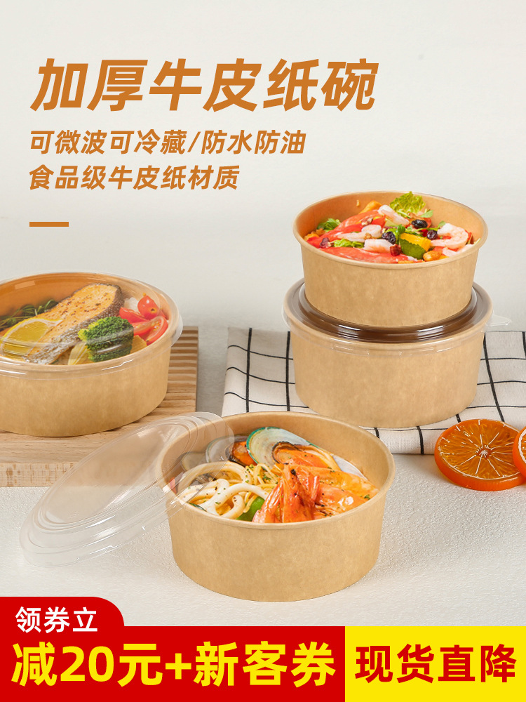 クラフト紙の包装箱の使い捨ての紙の碗のご飯の碗のピクニックの箱のサラダの碗の紙の弁当箱のテイクアウトファーストフードボックスの果物の箱