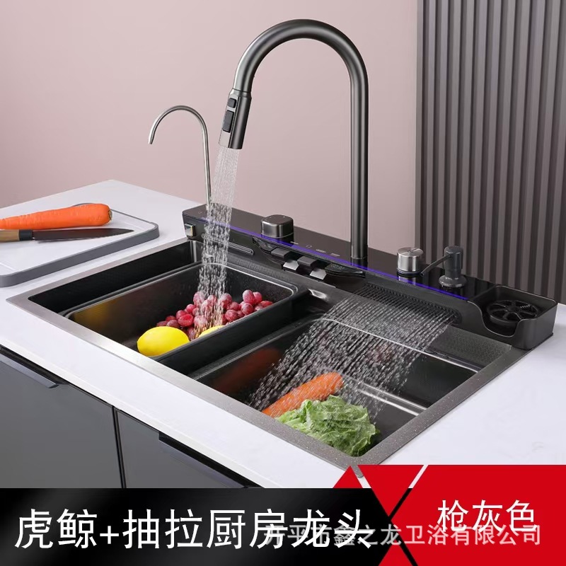 九 ᷂ 牧王厨房ナノ黒色水槽セット304ステンレス大単溝デジタル飛雨滝ピアノ
