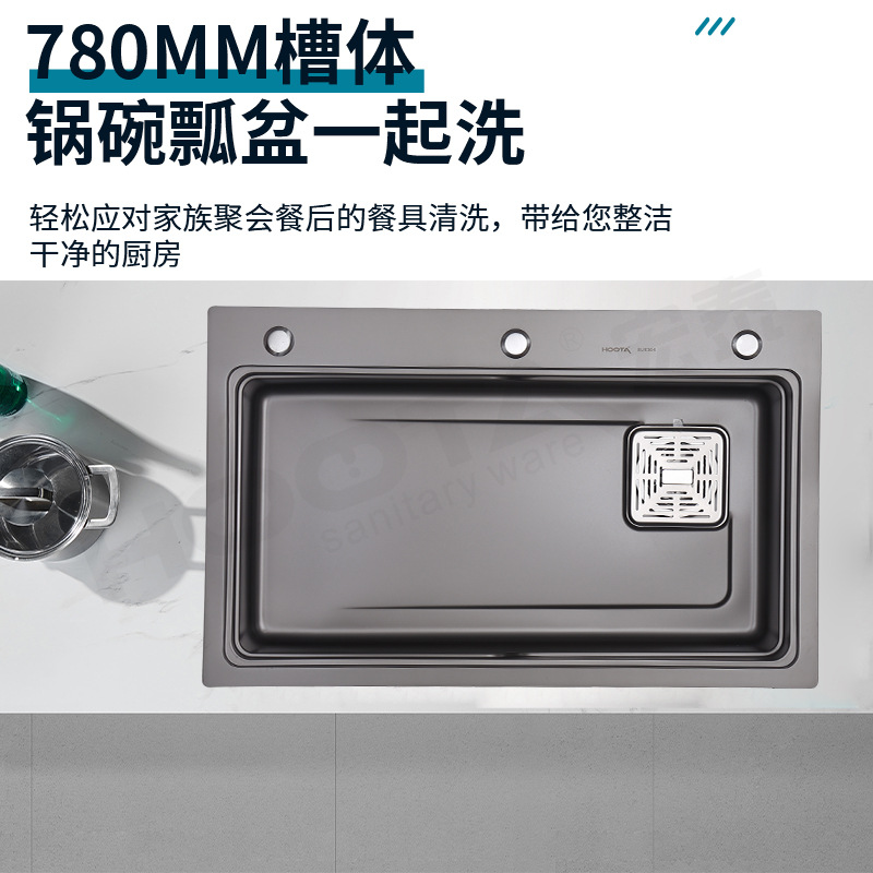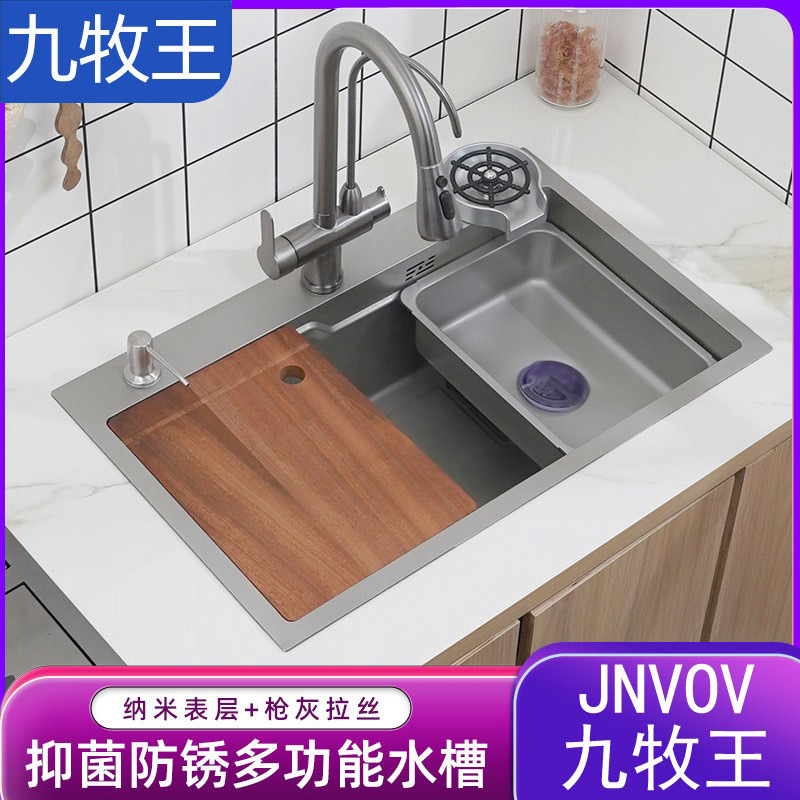 九 ᷂ 牧王厨房ナノ黒大単槽ステンレス304家庭用皿洗い池洗面器飛雨滝