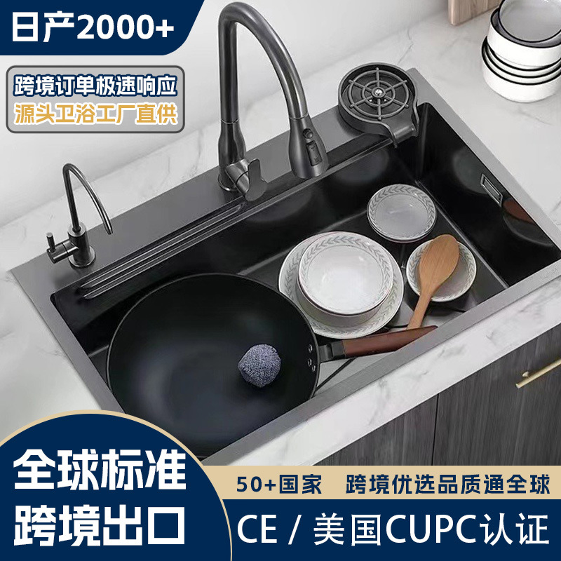 ブラックキッチン洗面器石英石シンク大単槽家庭用洗面器洗面器洗面器埋め込み式台下プール