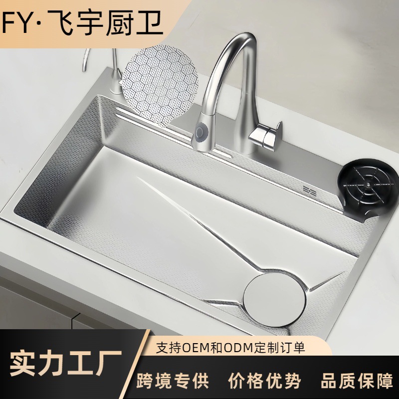クジラモデル多機能統合デジタルディスプレイ蛇口大型シングルスロット食器洗いシンクキッチンディッシュラックシンク
