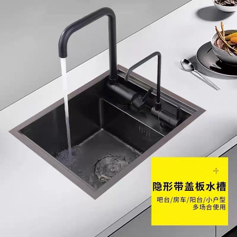 黒色ナノ304ステンレス製シンク キッチン用小型角型洗い桶 卓上型シングルシンク バーテーブル アイランドテーブル バルコニー用