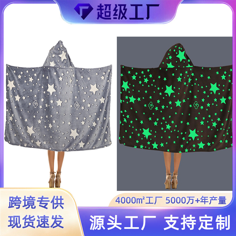 クロスボーダー帽子付き毛布夜光マント子供毛布創意事務室昼寝ブランケットプリント怠け者ブランケット卸売り