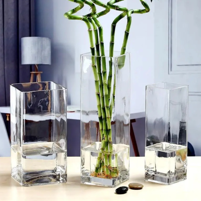 高クリエイティブ透明角型花瓶富竹フラワーアレンジメントユリの花ホームリビングルーム高ホウケイ酸ガラス花瓶